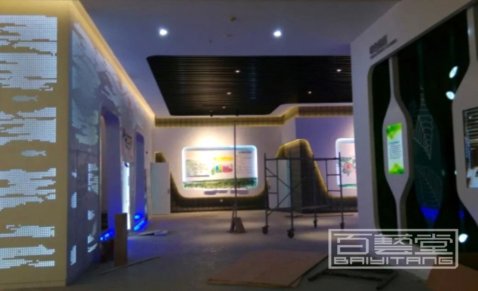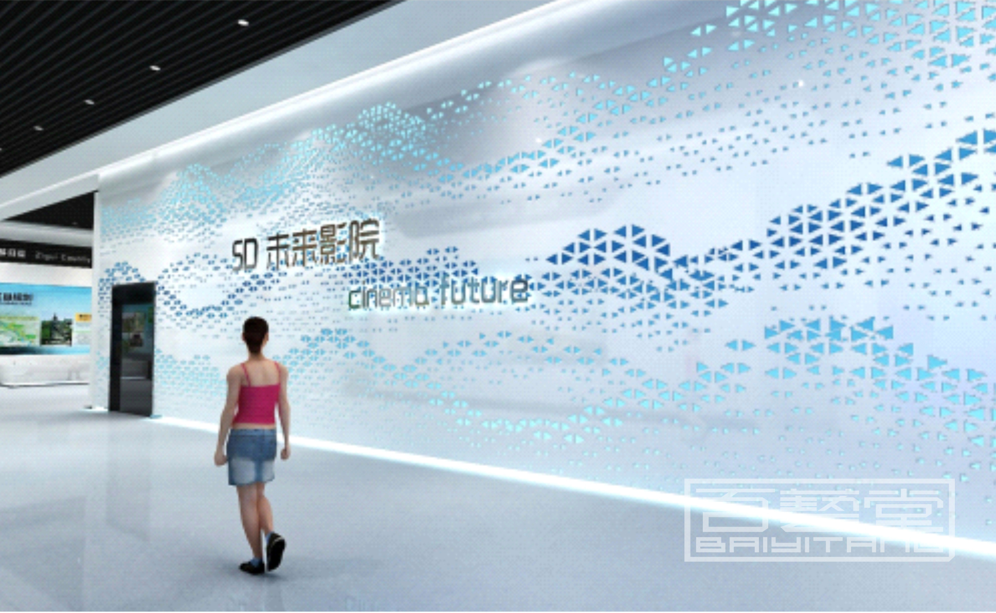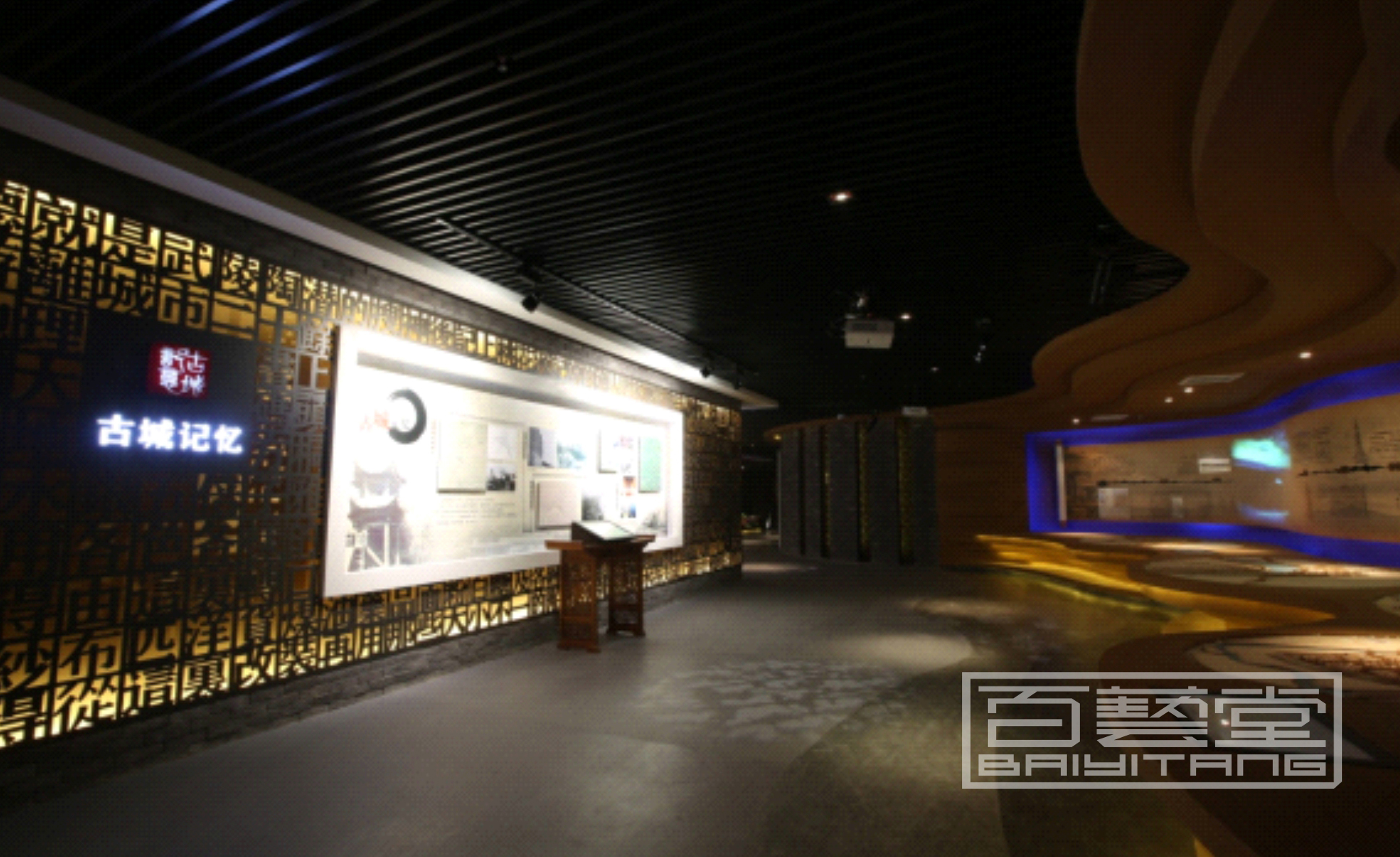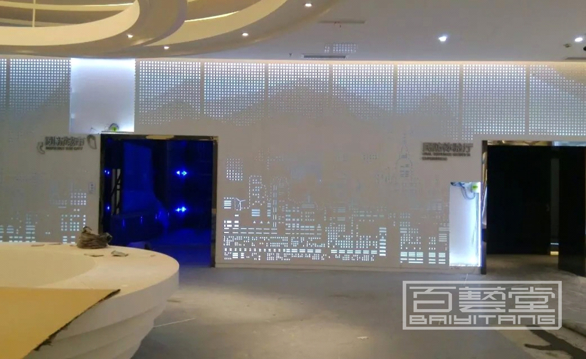 蝕刻彩色不銹鋼、波浪形鋁單板,鋁雕刻板,點(diǎn)綴效果,鏤空內(nèi)側(cè)藏?zé)魩?,歷史區(qū)鐵灰色藏暖光,現(xiàn)代區(qū)白色藏白光或藍(lán)光,也可用來(lái)包裝影院數(shù)字沙盤(pán)等外墻面,實(shí)體效果非常美觀,創(chuàng)作手法隨意發(fā)揮。
