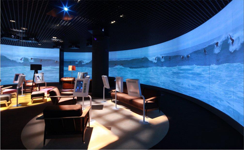 120°-360°環(huán)幕影院不同于一般的電影屏幕,環(huán)幕影院采用柱面投影屏幕 ,將觀賞者圍繞在中心。超長(zhǎng)跨度的廣闊畫(huà)面充滿觀賞者的視野,全方位立體聲與影片情節(jié)相輔相成。柱面投影屏幕的弧度有360度、270度、180度等多種選擇,可根據(jù)場(chǎng)地具體情況進(jìn)行個(gè)性化設(shè)計(jì)和施工,保證環(huán)幕影最佳的視聽(tīng)效果。