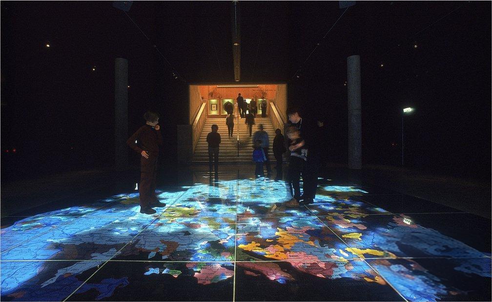地面互動投影系統(tǒng)采用懸掛在頂部的投影設備把影像效果投射到地面,當參訪者走至投影區(qū)域時,通過系統(tǒng)識別,參訪者可以直接使用雙腳或動作與投影幕上的虛擬場景進行交互,各種互動效果就會隨著你的腳步產(chǎn)生相應的變幻。地面互動投影系統(tǒng)是集虛擬仿真技術、圖像識別技術于一身的互動投影項目,該項目包括水波紋、翻轉、碰撞、擦除、避讓、跟隨等表現(xiàn)形式。觀眾通過身體動作來與地面的圖像進行互動,想象一下各種特效影像在你腳下綻放的畫面吧,它將帶給你一種新奇的體驗。
