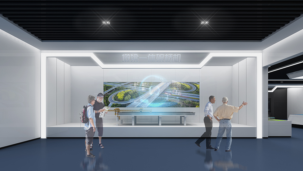 該展廳為深汕西改擴建項目第一個展廳,從最初的材料展示廳,經(jīng)過深入挖取、精準(zhǔn)定位,逐步定位為樹立高速公路改擴建行業(yè)名片、探討技術(shù)創(chuàng)新模式、促進技術(shù)變革創(chuàng)新、及各施工工種施工交底和安全教育體驗等多功能工程展示廳。展廳借助多媒體和數(shù)字化技術(shù),結(jié)合各種科技展示系統(tǒng),打造一個綜合展示空間,為參觀者呈現(xiàn)了一個前所未有的體驗盛宴。